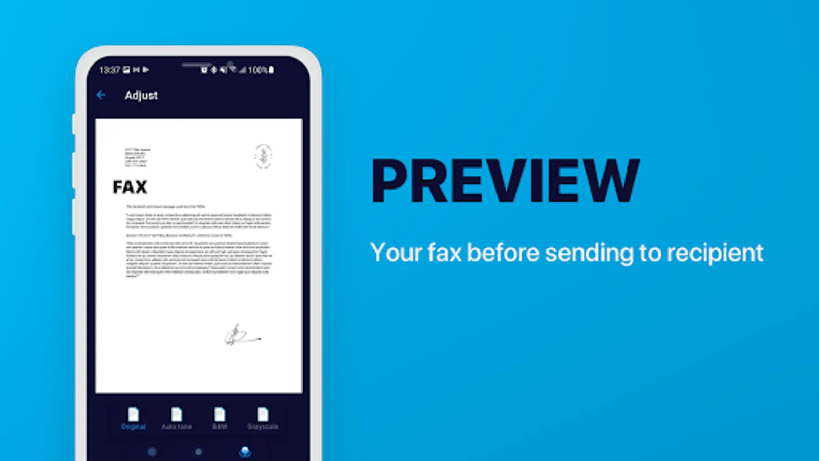 Easy-to-use, fast and secure fax app on-the-go. Import or scan documents, invoices, receipts or notes and send them worldwide in just a few taps. Built-in advanced scanner will turn all your files into fax-ready documents.