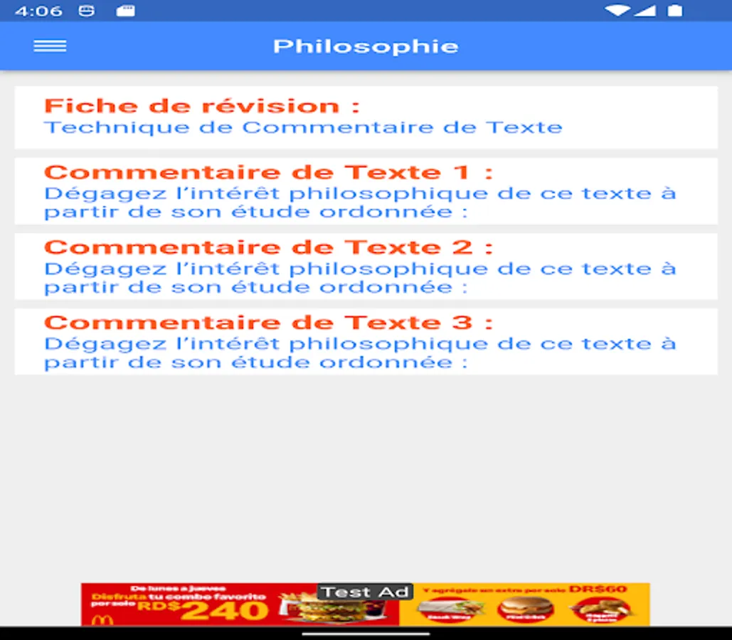 This Android application called Philosophy: Text Comment contains corrected subjects. It is designed to help pupils and students studying Philosophy.