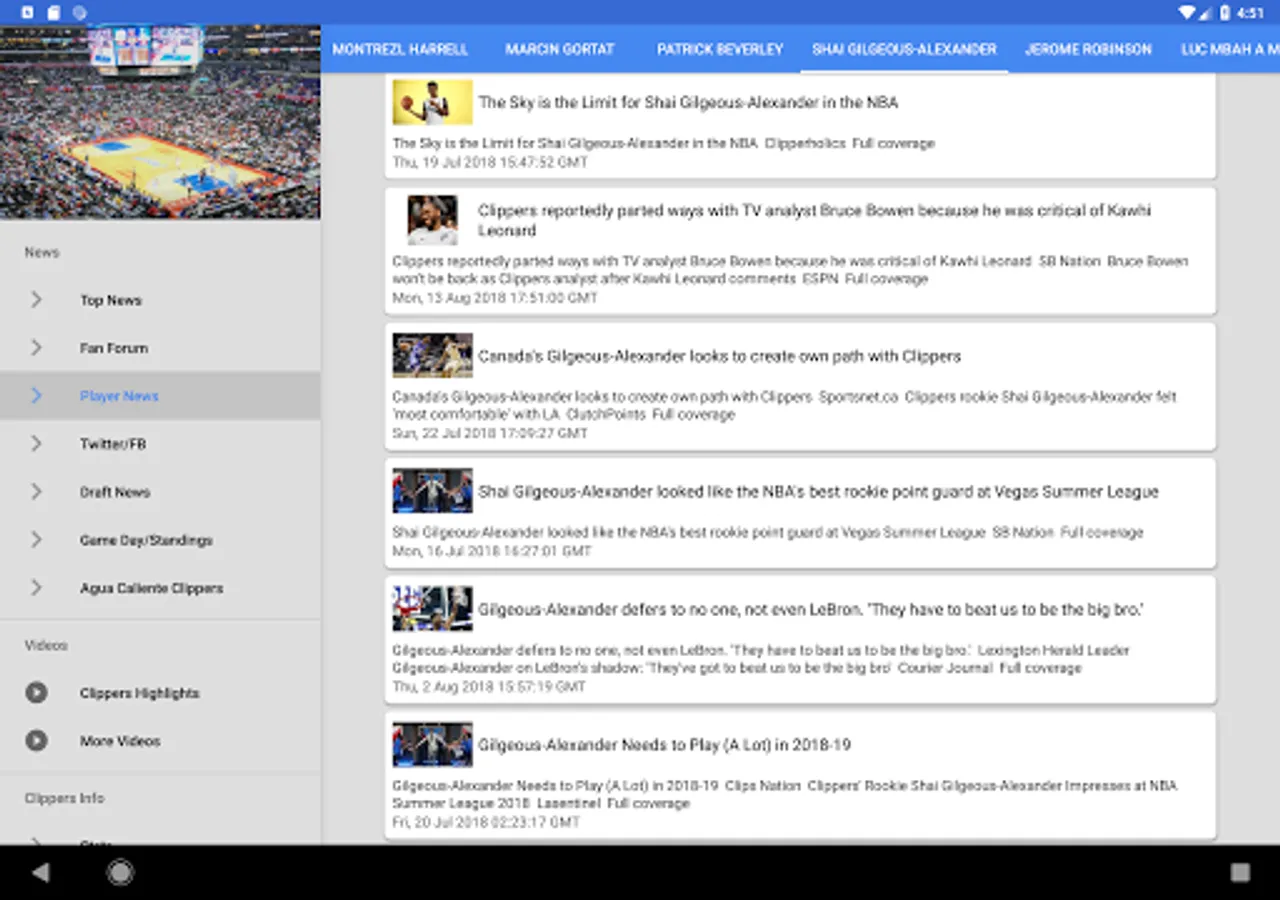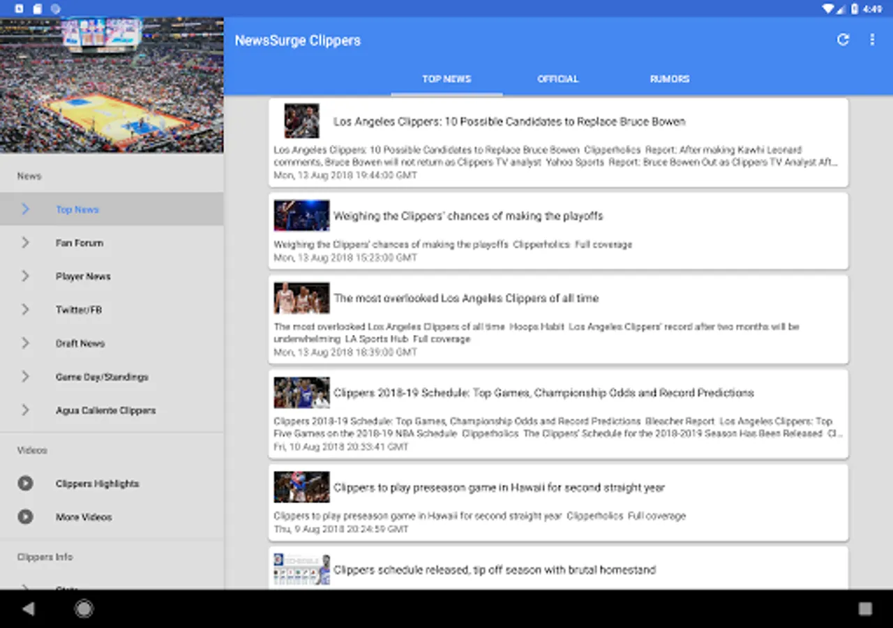 Update for the 2018-19 NBA season! The News Surge Clippers app provides the latest news, rumors of the LA Clippers NBA basketball team. Updates includes those of the new Agua Caliente Clippers of Ontario G League affiliate team as well. You can easily access the latest game recap, highlight videos, injury updates, standings, plus stats. The latest happenings of the current roster of players such as are included in this easy-to-use universal app for Android phone or tablet.