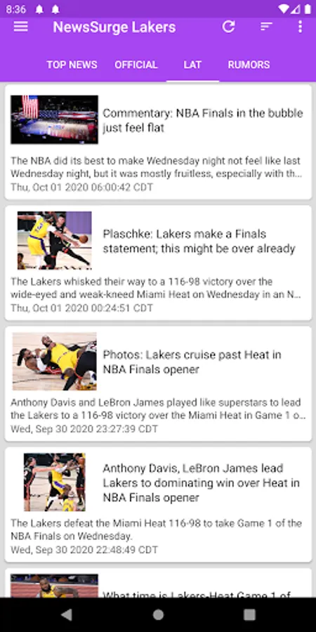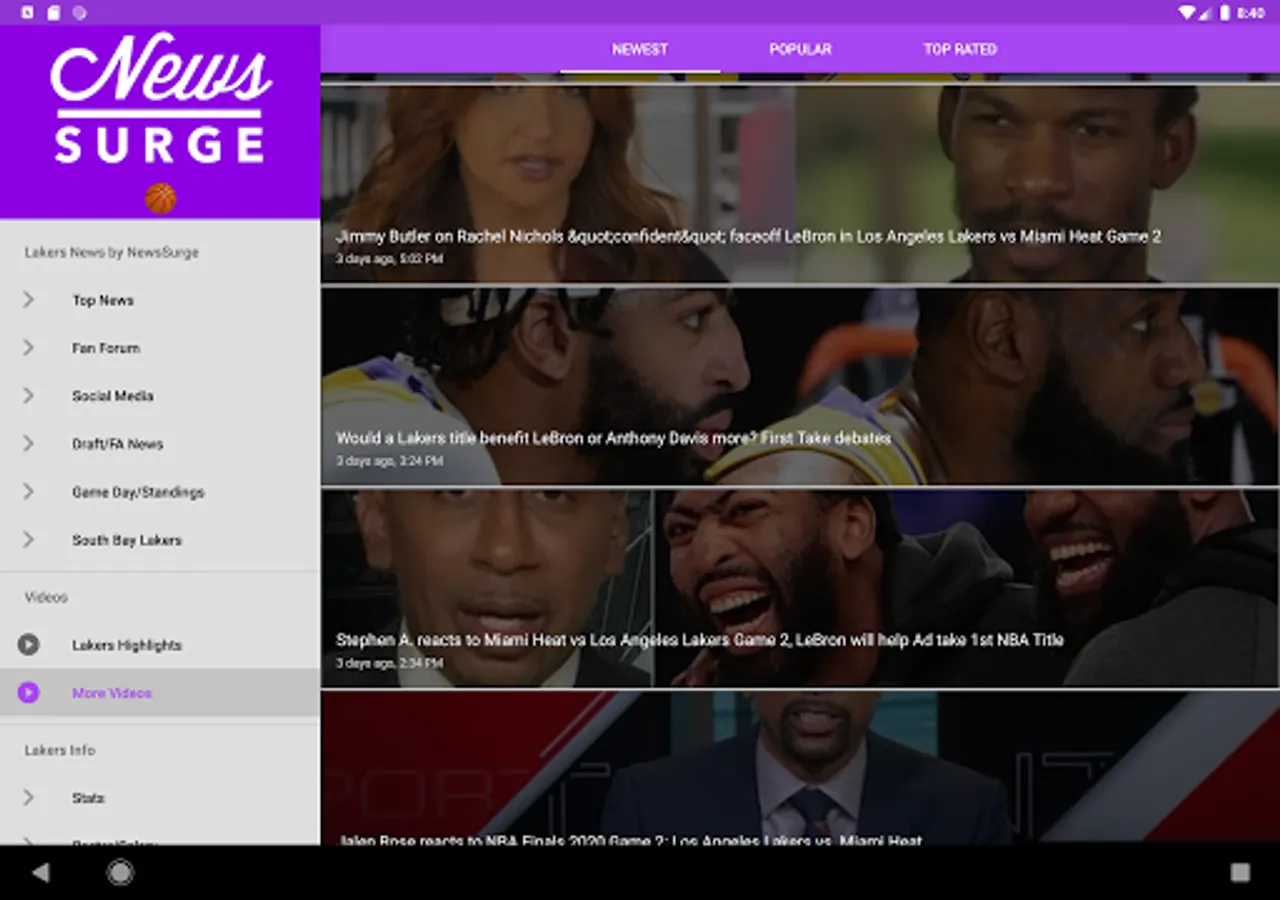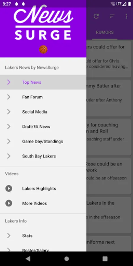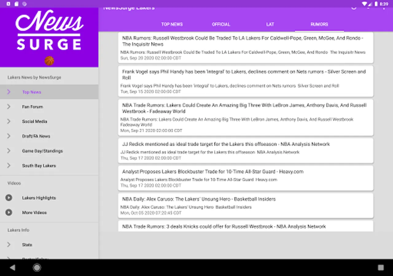The News Surge for Lakers app provides fans of the NBA basketball team the latest Los Angeles Lakers news, rumors, and fan forum posts of the legendary team. Read up-to-the-minute rumors, news, highlights, videos, tweets and free agency happenings with this easy-to-use universal app both phones & tablets.