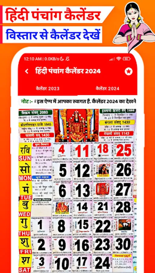 The Hindi Calendar App 2024 is a worldwide free almanack calendar app.