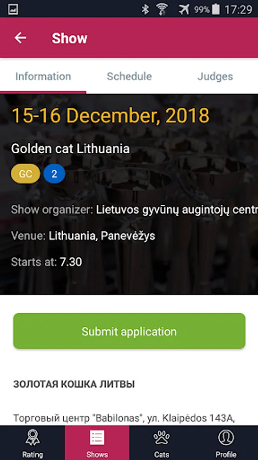 This app allows you access to numerous features of TopCat service, and allows you to apply to a show, review your cats' schedule and participate in the rating with your mobile device alone.