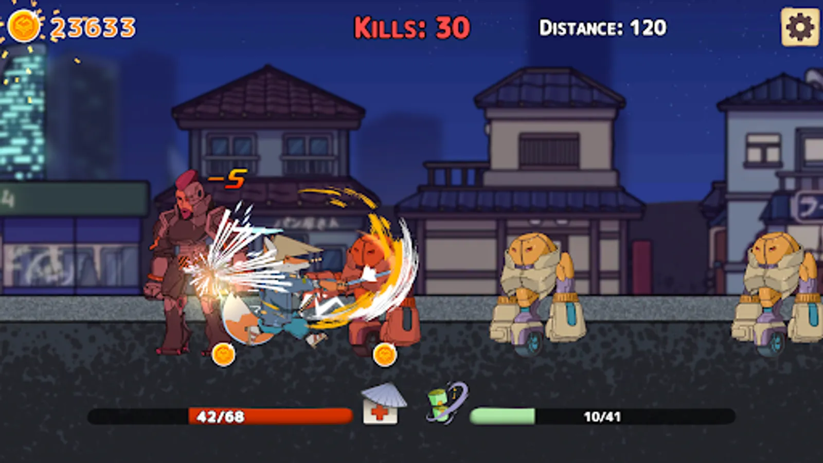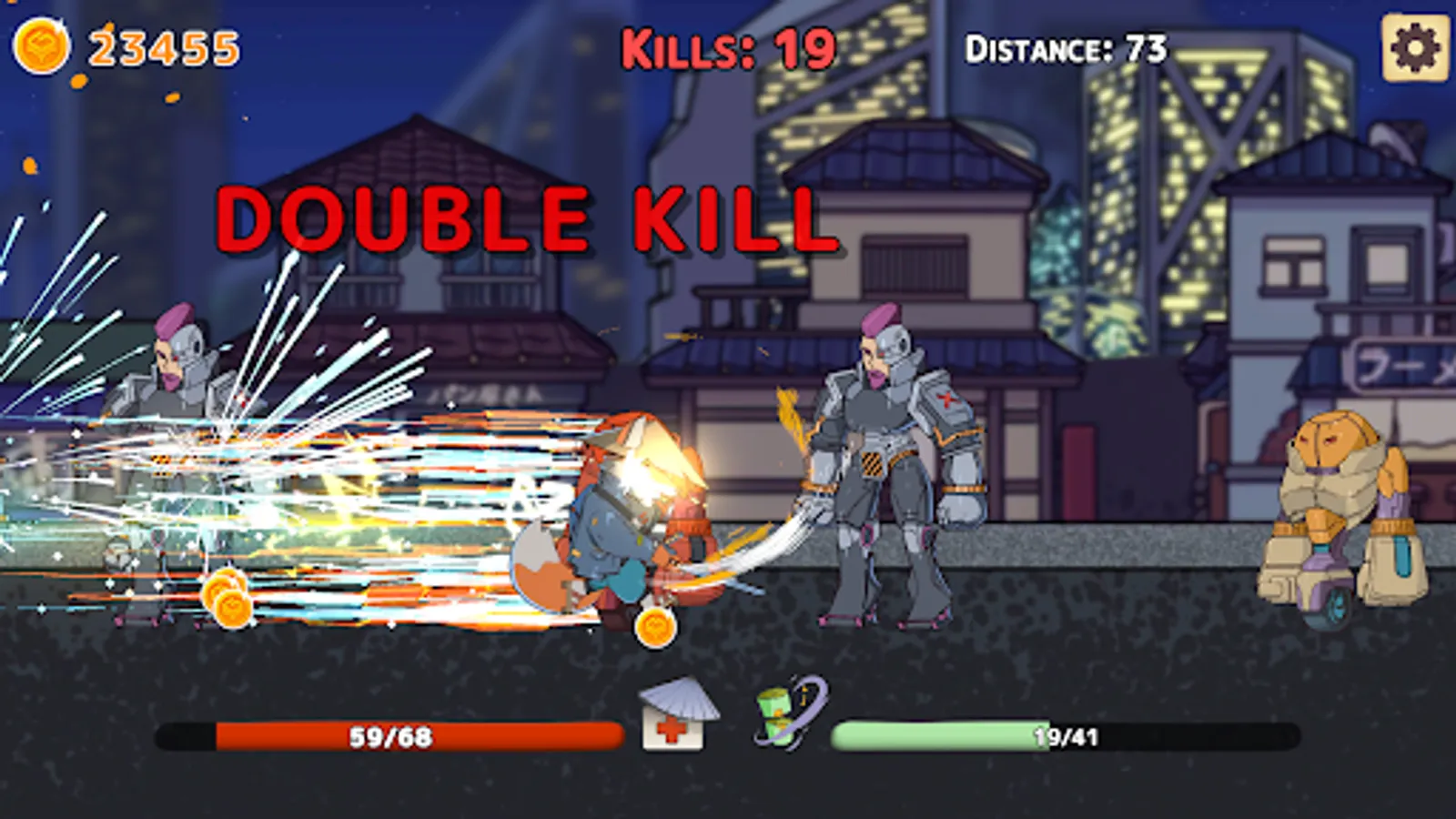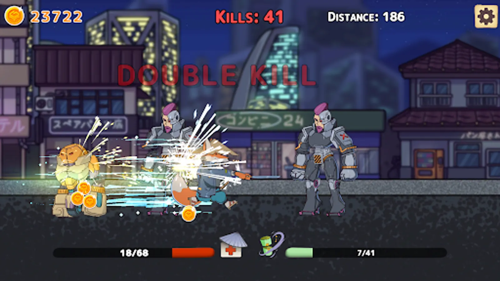 You are the fox samurai. You've entered a souless city where only violent machines live. Slash as many as you can on your way and face giant robot bosses.