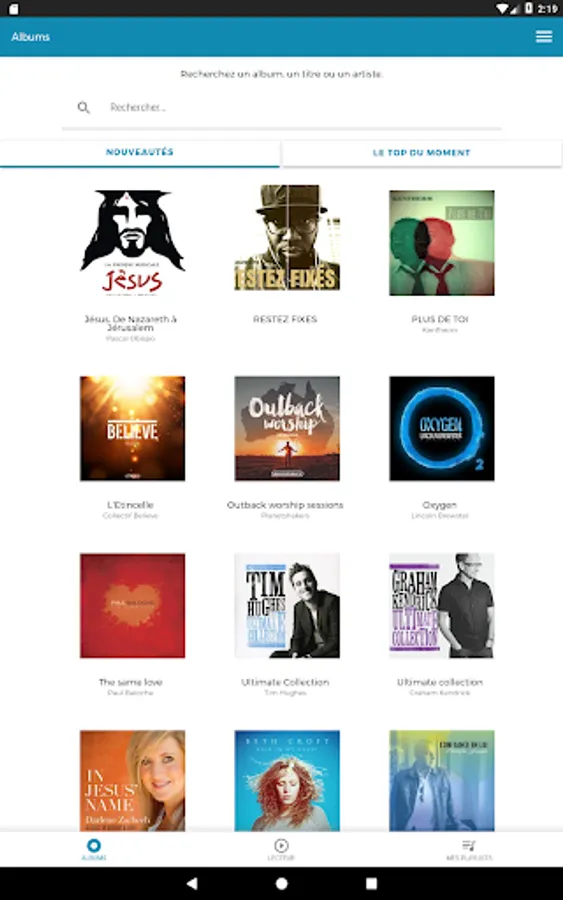 Indeed, whatever your style, this app is for you: French Praise, Praise Anglophone, Francophone Pop Anglophone, Francophone Pop Rock Anglophone Rock, Gospel, Rap / Hip Hop, Africa, West Indies / Caribbean R 'n' B / Soul, Reggae / Ragga / Ska, Variety / French Song, Album for Children, Jazz / Blues, Country / Folk, Dance / Dance, Music Israeli, Christmas Albums, Latin, Celtic, Classical, Instrumental