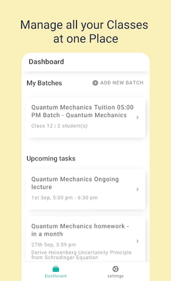 TopClass brings every aspect of an offline classroom in web and mobile app. Students can join classes with a single button. Submit their homeworks in the most simplistic way. Access their study material 24X7 even without Internet.