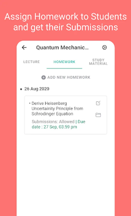 Assign homework to students and students submit their assignments in the TopClass App. Say Bye Bye to Google Forms and Whatsapp Uploads.