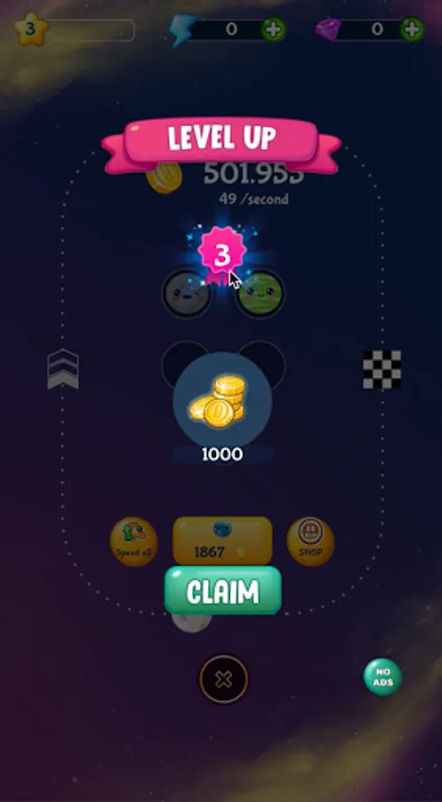 - Buy and Merge planets and upgrade them to the next level to speed up