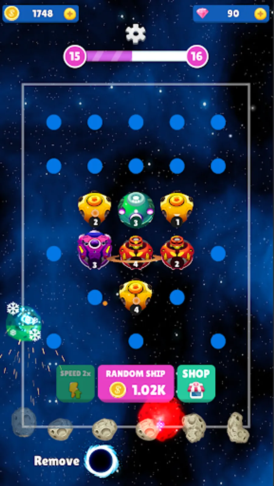 Merge the spaceships to improve their power, Collect millions of coins to buy new spaceships, destroy thousands of comets and reach higher levels.