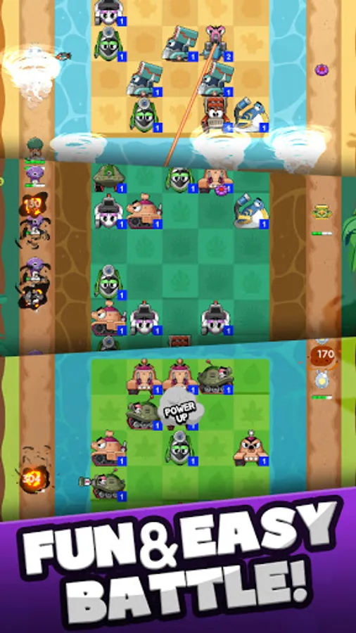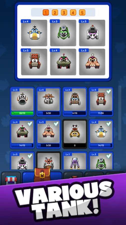 > Collect tank pieces to level up your tank. It will become more powerful.