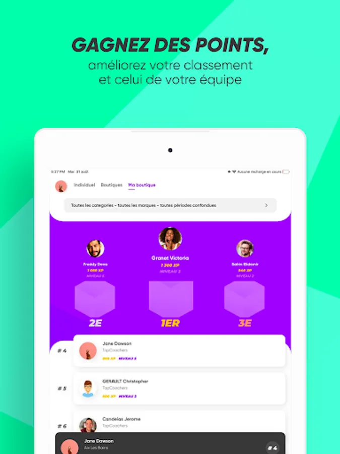 TopCoach is collaborative: You remain committed to this process on a daily basis by collaborating with your colleagues, by participating in challenges and challanges to earn points, improve your ranking or that of your establishment in return for rewards and incentives. You are part of a community that has the same expectations as you!