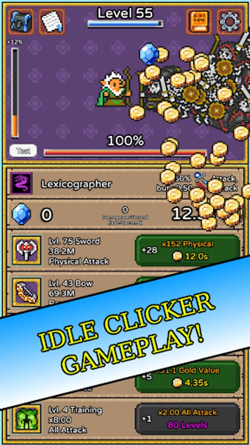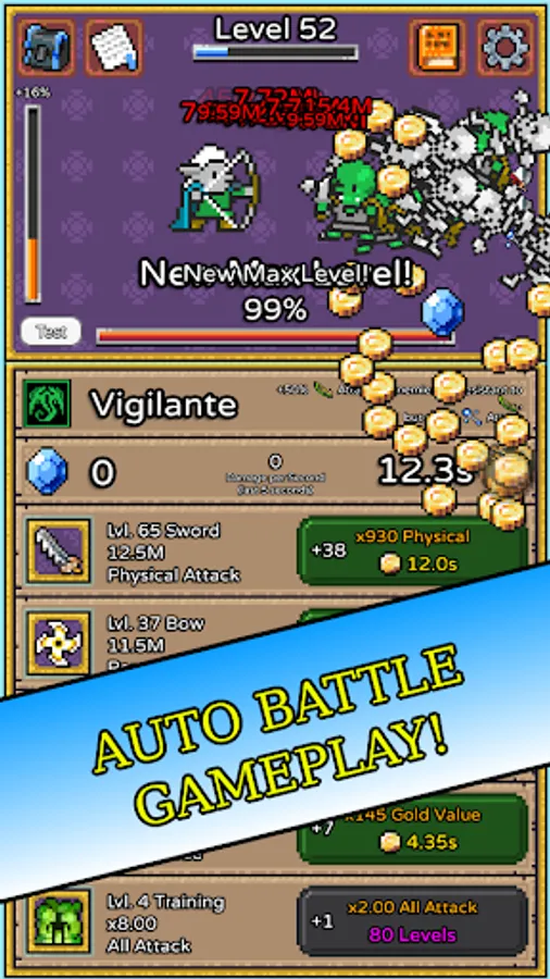 Embark on the epic quest of good VS. evil in this refreshingly simple RPG Idle Clicker Incremental! Assume the identity of an Idle Tap Hero as you combat fearsome Monsters in an RPG Quest for loot! Fight -> Loot -> Upgrade -> Rinse and Repeat! There is no choice: advance or die!
