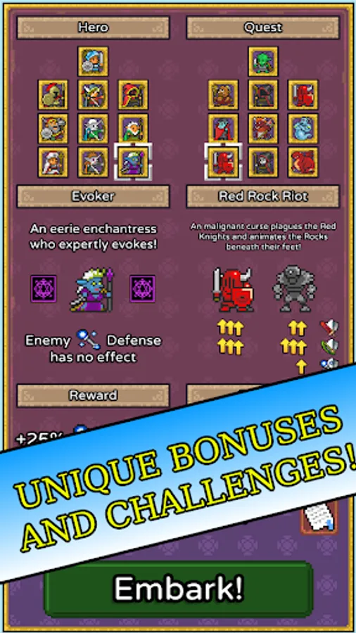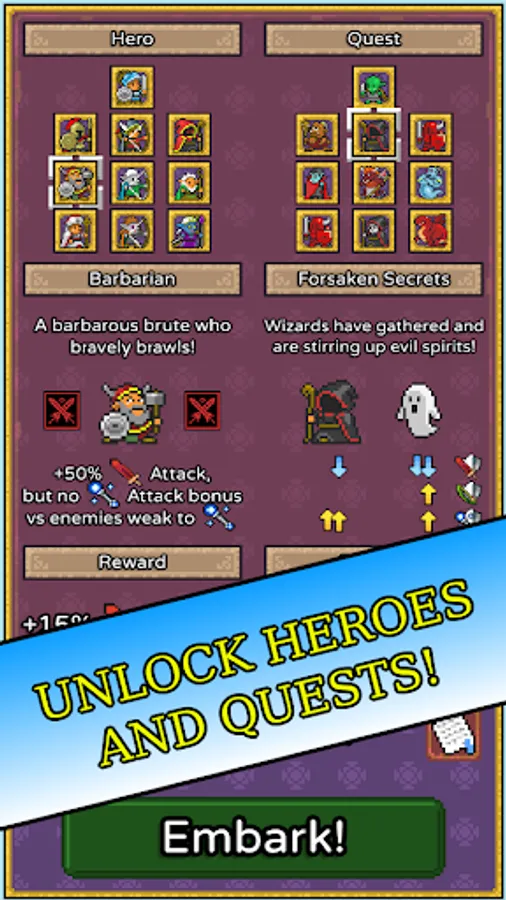 * Match the right Idle Tap Hero with the right Quest to maximize your Battle advantage!