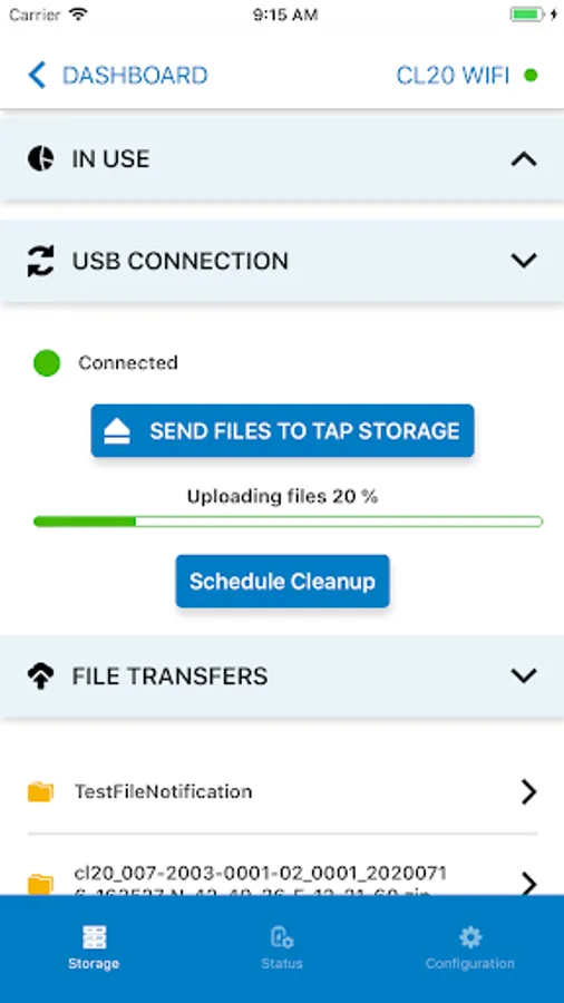 - Data transfer status
