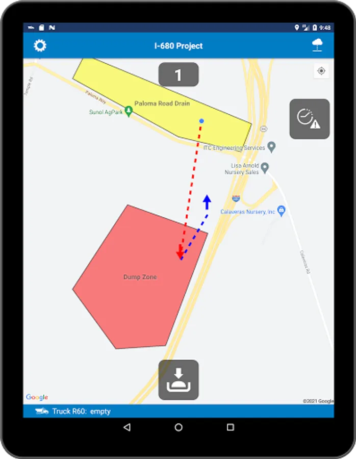 Truck drivers enjoy automatic load and dump detection with prefilled material, weight, region and machine information – leaving you free to concentrate on the loading and dumping process without radio chatter or paperwork exchange. Take the guess work out of knowing where to load, haul and dump with highlighted areas displayed on the map.