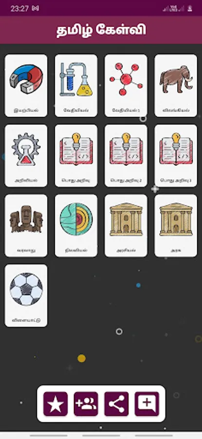 வணக்கம், இந்த செயலியில் இயற்பியல், வேதியியல், கணிதம், அறிவியல், அரசியல் போன்ற பாடத்திட்டத்தின் கீழ் வினாடி-வினா தொகுத்து வழங்கப்பட்டுள்ளது.