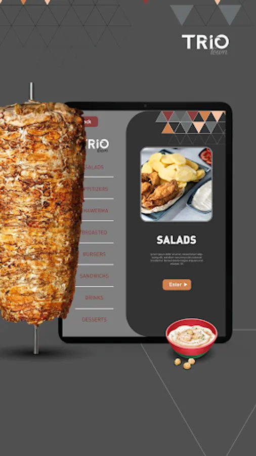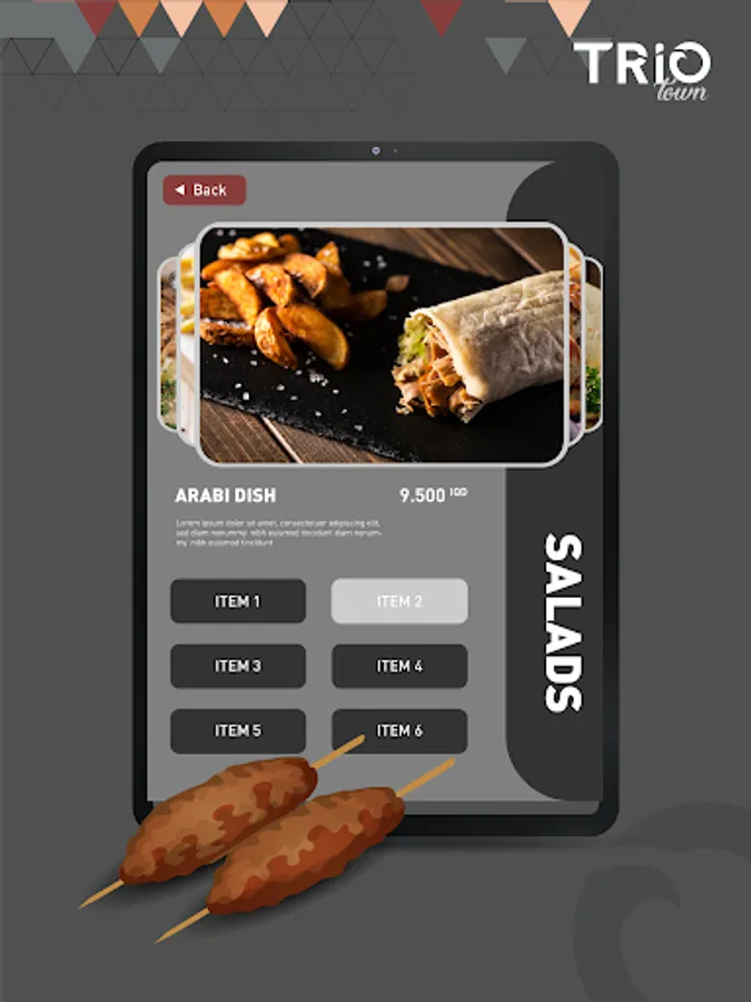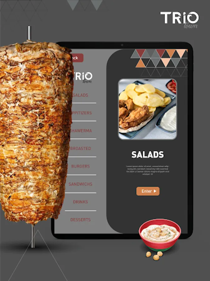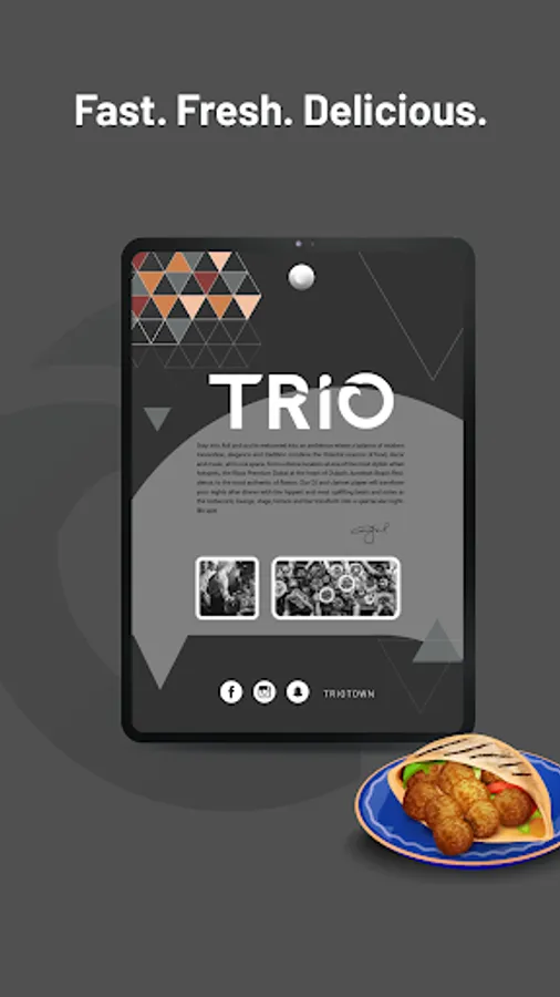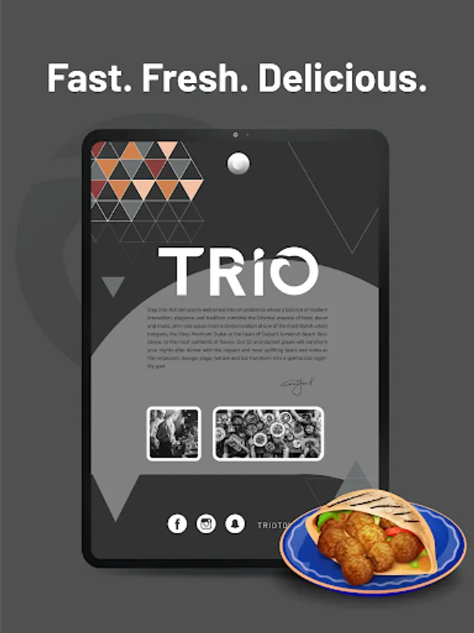 Digital menu for Trio restaurant, where you can browse all our food and drinks then order.