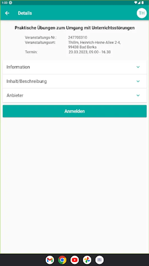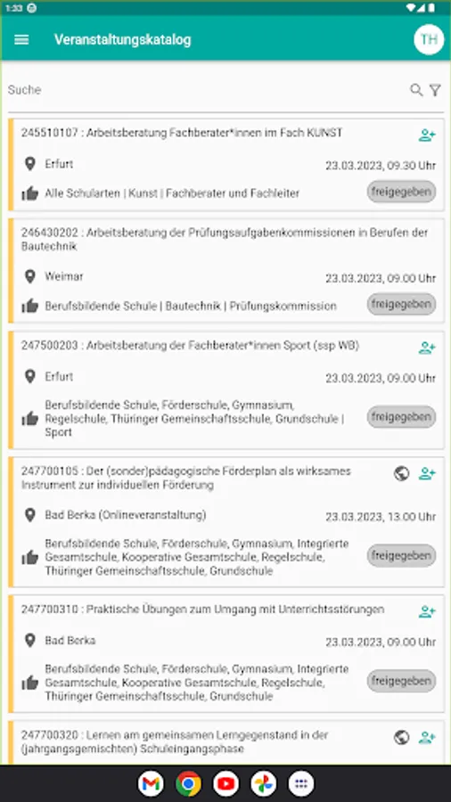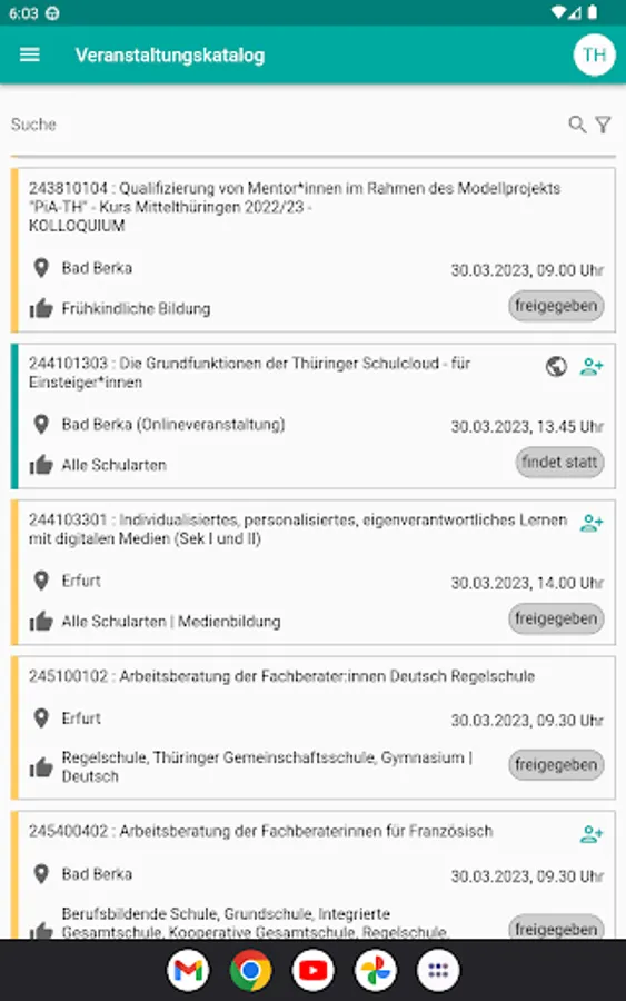 The tis app can be used to research further and further training offers for teachers in the state of Thuringia.