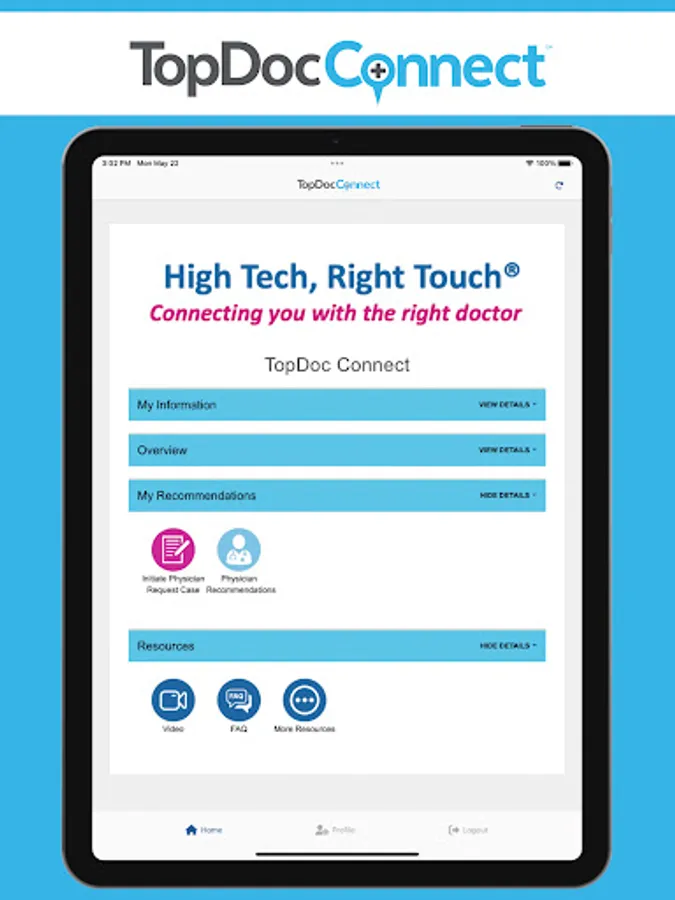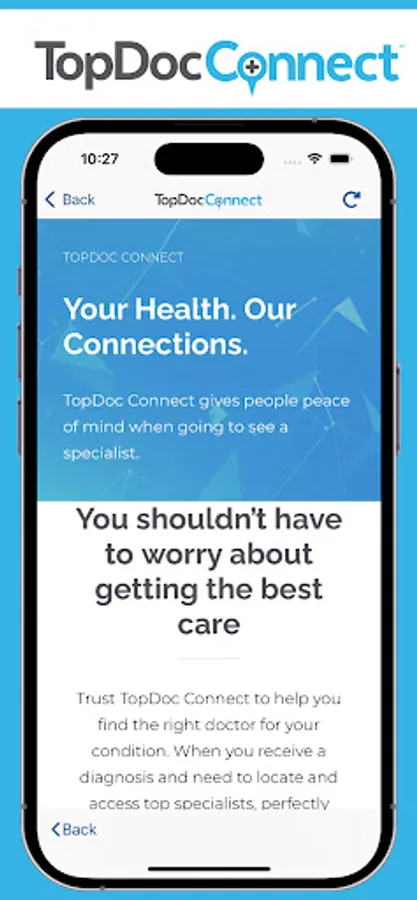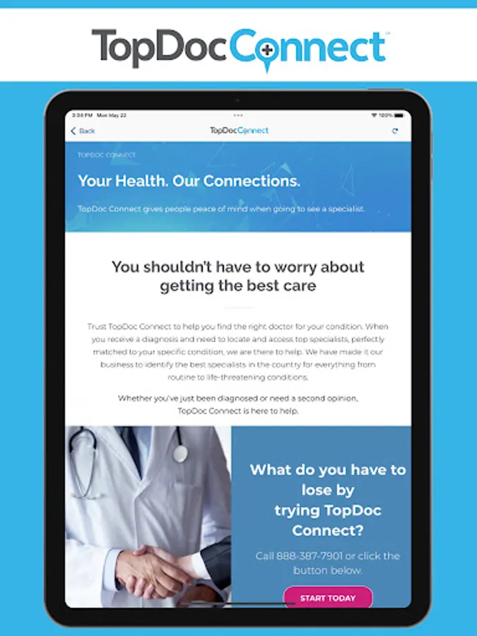 TopDoc Connect is a specialist matching service that helps ArmadaCare members find the perfect physician specialist for their condition, enabling them to avoid misdiagnosis and incorrect treatment. This service produces carefully curated specialist recommendations based on a diagnosis and/or personal preferences. This service is available in select ArmadaCare plans.