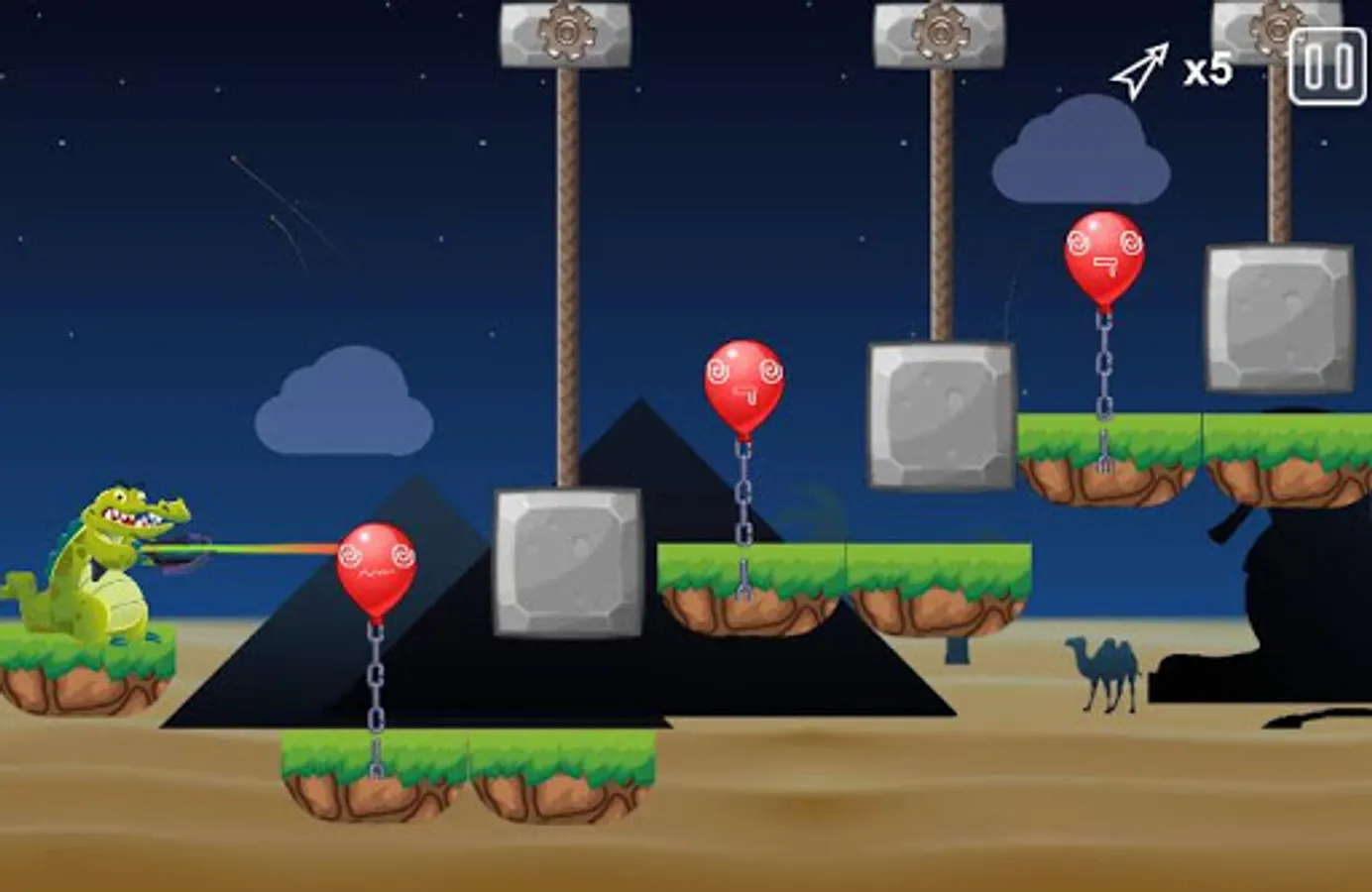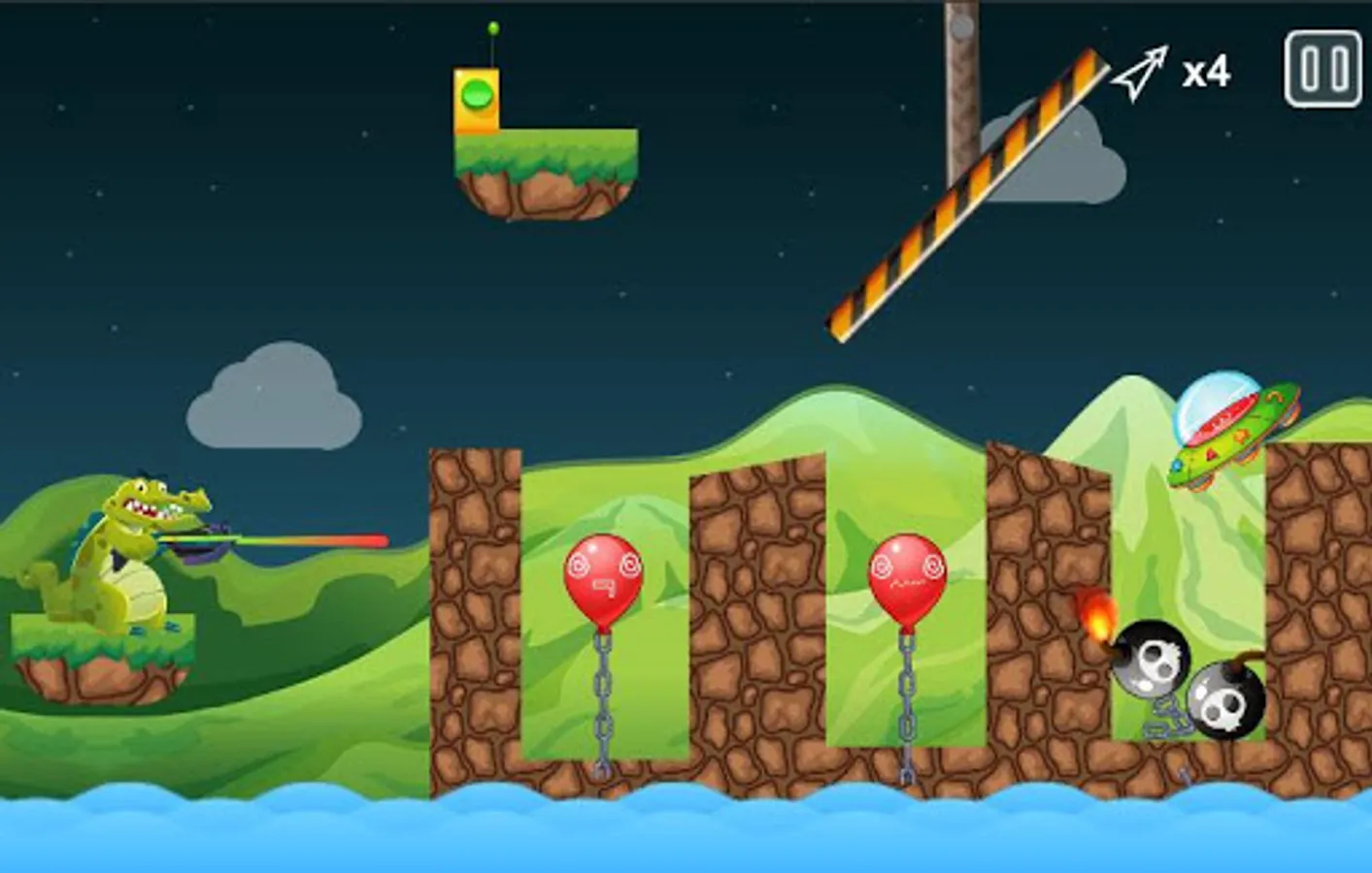 Hold and move on screen to control the angle and power of a shoot. Release to shoot the arrow. Shoot all the balloons within the limited arrows and do not let any of them fly out of the screen. Some balloon cannot be broken by arrows. So it was interesting to find indirectly way of the shoot down them.