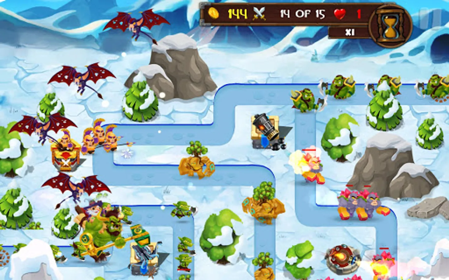 Tower Defense: Kingdom is a tower defense game that challenges veteran players. Use a huge variety of powers and abilities to vanquish wave after wave of the menace of enemies. Travel through lush forests, snow-covered mountains, and epic desert as you face off against armies of slimes, goblins, orc, witch, skeletons, and more.