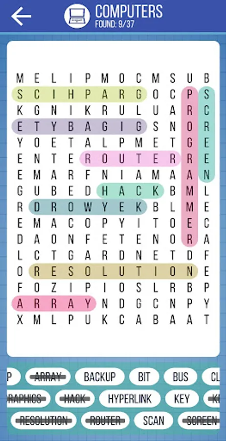 ● Easily customize the grid of letters and highlights to use whatever font, color, and size you'd like.