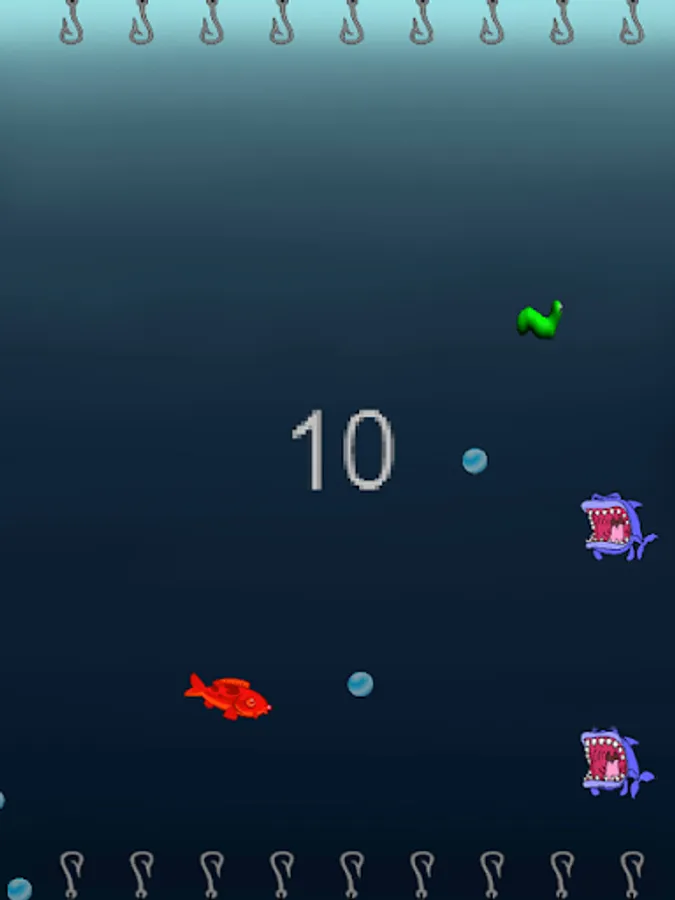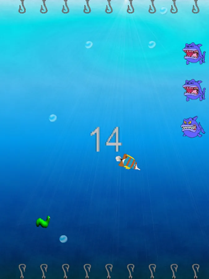 The main goal of this game is to survive as long as possible between sharks and hooks.