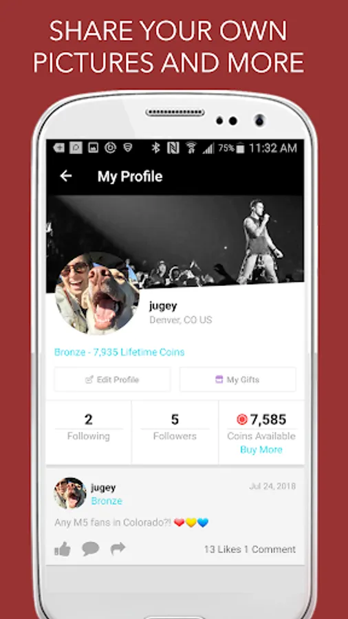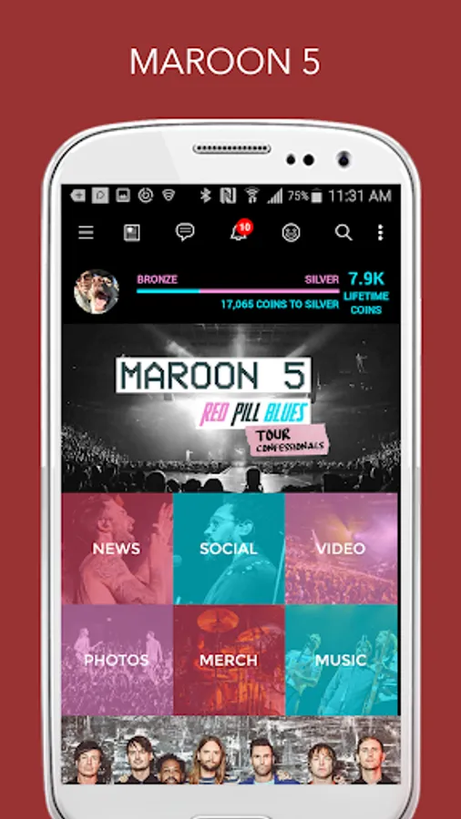 Connect with Maroon 5 and the band's worldwide fan community. Stay up-to-date on the band's latest activities, meet fellow fans from the Maroon 5 S.I.N. Club and share your M5 stories. Take on in-app challenges, quizzes and polls to earn points for special offers and prizes.