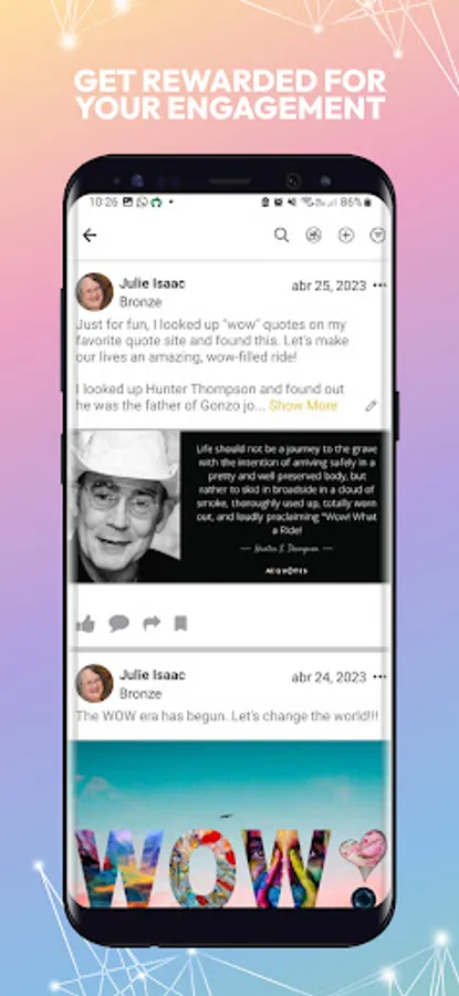 Inside of WOWUNOW, while enjoying the full positive safe social media experience, away from shaming and blaming, we also proactively connect the everyday person to free resources in the best of the best in personal and business development, along with connecting in proactive ways with influencers, causes, leading brands and celebrities, powered by community, incentivized with rewards and recognition, to help you and your friends become global Changemakers.