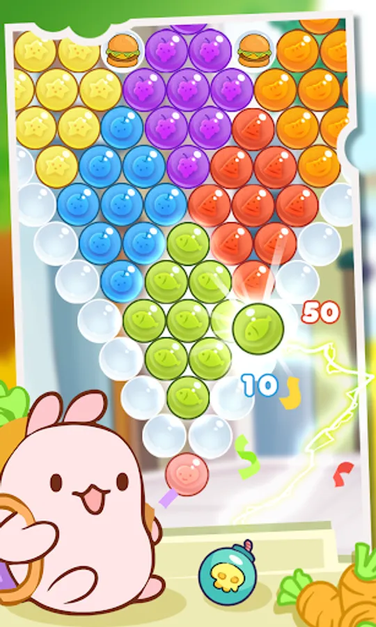 The rabbits are very hungry and crave sweet cookies, hamburgers ... only you can help them. Make plans with Bear, Bunny, Berry and your gang to join in on the Dream Bubble cookie pop game and explore the world of cookie bubble to collect new food for yourself. Let's start colorful pop bubbles to enjoy the great burgers, cookies!