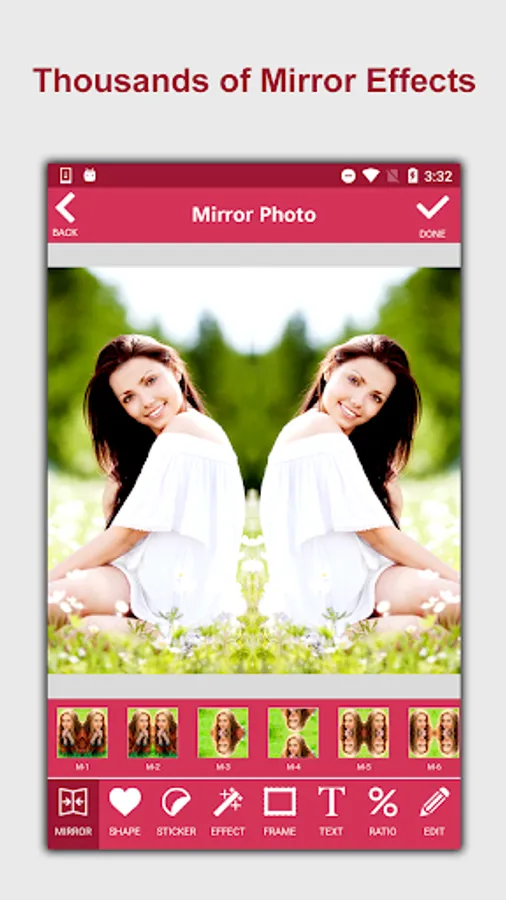 Mirror Photo is a one stop app for all your optical effects i.e. mirror effects , shape effects and collage making needs.