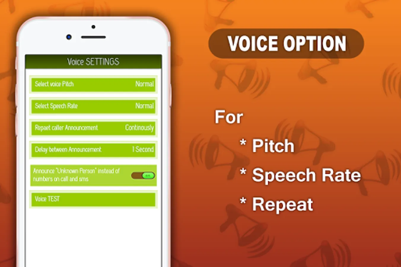 - Adjust Voice through Pitch, Speech rate, Repeats and Delay