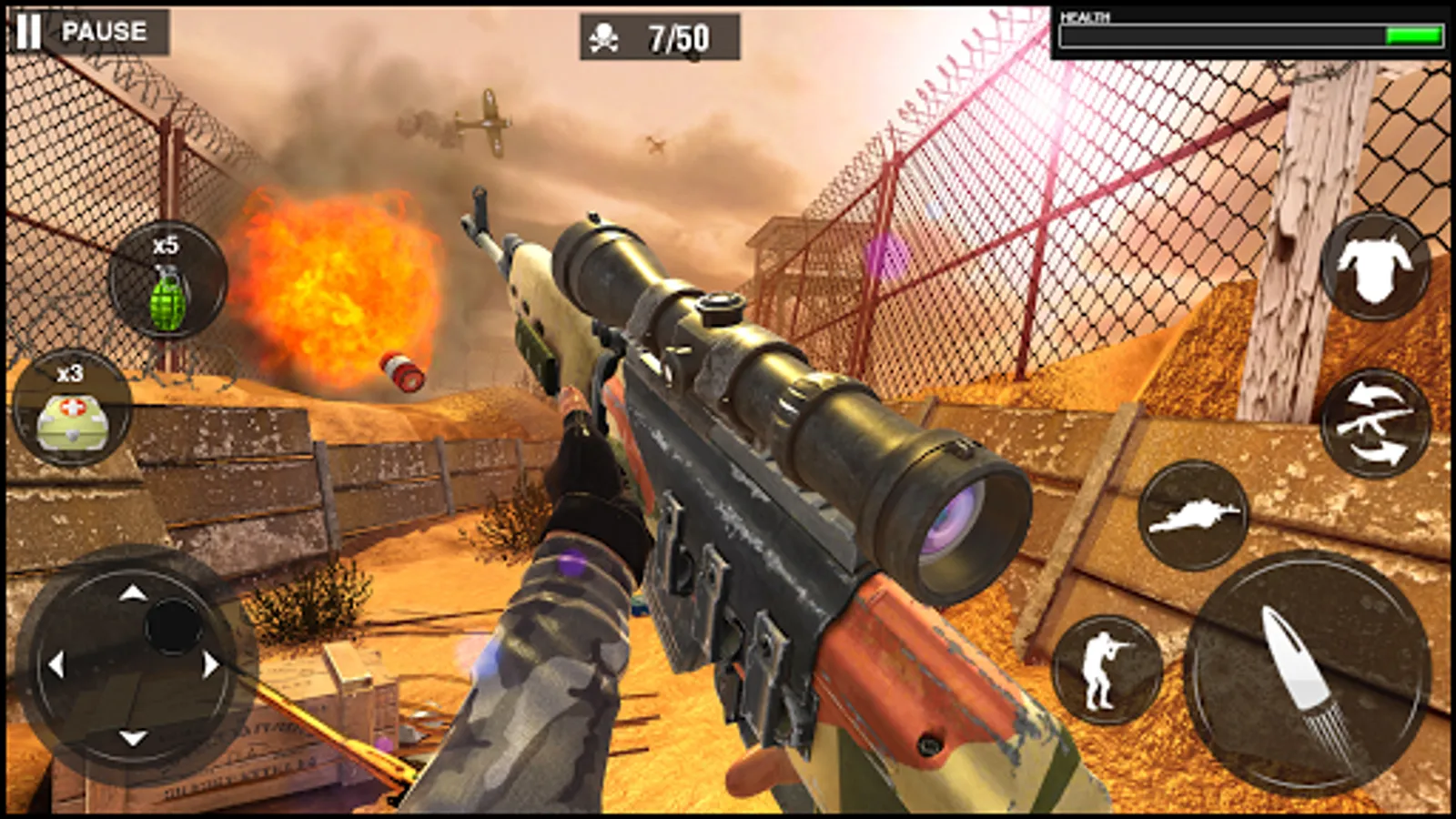 World War WW2 Special Forces Army Sniper Duty 2019 is the call of army WW2 sniper to complete your Free Fire shooter duty. You have many firing free task and missions in hands. So, go in battlefield with the aim to survive till the end. Use the sniper and guns at your disposal to fulfill your world warfare duty games. In this free military action game you are the one who hears the call of army WW2 Sniper and fight battle to do his Free Fire war shooter duty. Fight the battle with best warfare combat weapons and complete offline missions military and win medals. In this action fps free game and a new military shooting game you should continue fighting and destroy enemy camps which are hidden and prevent your army camps from destruction.