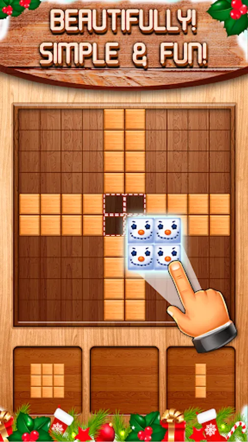 Place the pieces into board. Fill up the wooden blocks to score high! Once you fill in a vertical or horizontal line, it will disappear, freeing up space for new pieces.