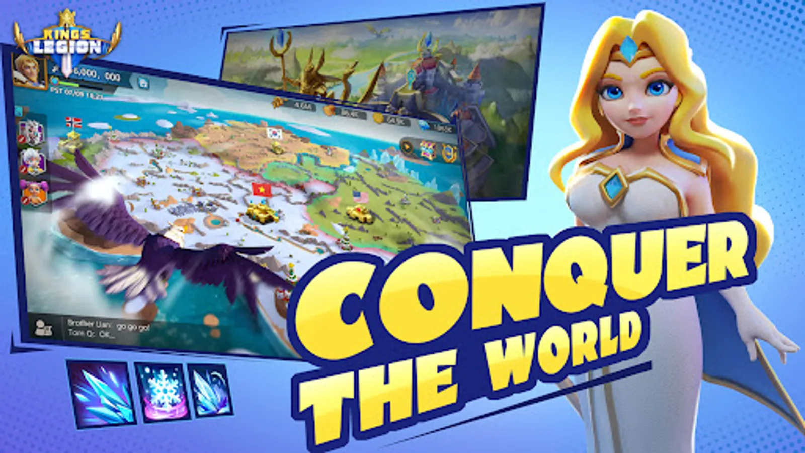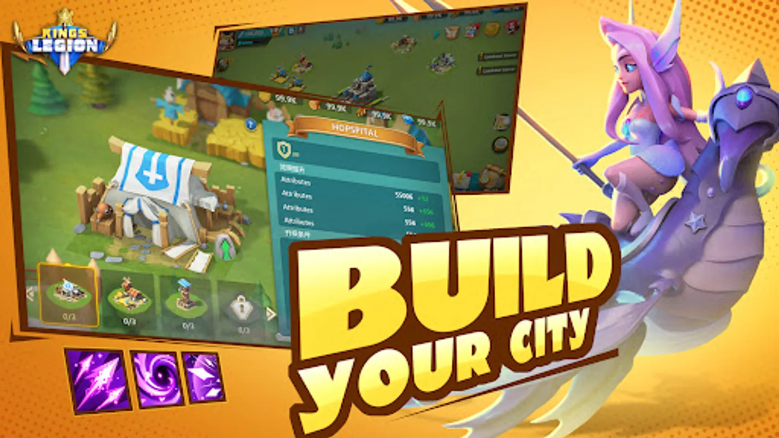 Are you ready to play Kings Legion with fellow players worldwide? Save the Nasland from the dark forces and recover the order of the world! Summon your favorite Heroes, select your Faith, and train fearless troops for the establishment of your own empire!