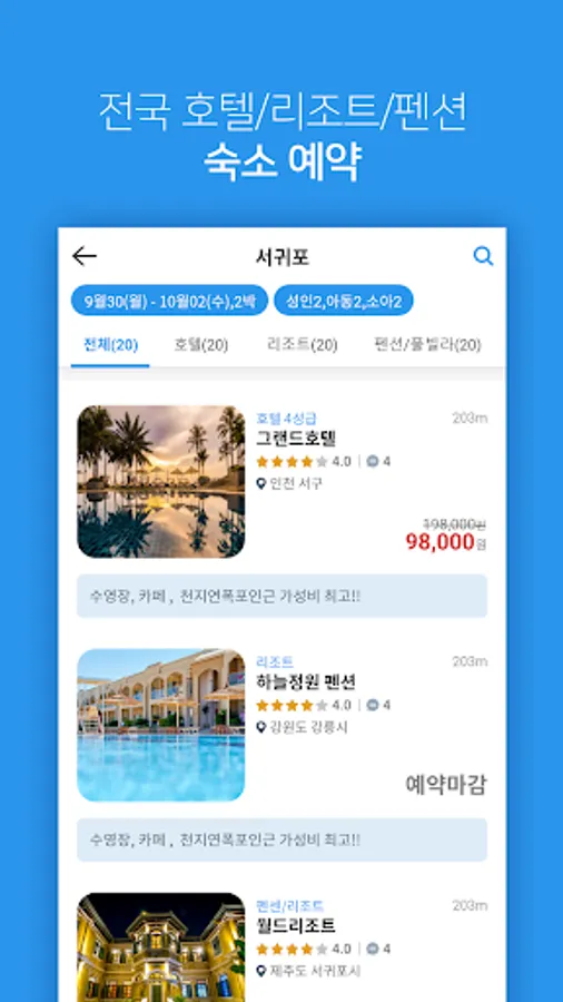 -You can check the accommodation information of domestic hotels, pensions and resorts at a glance