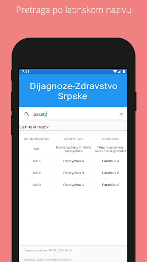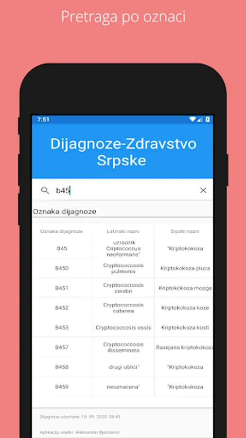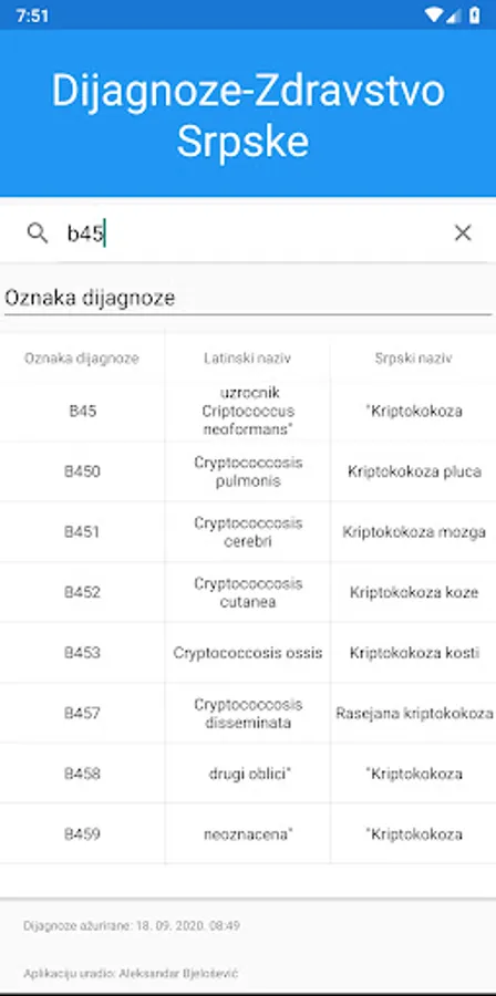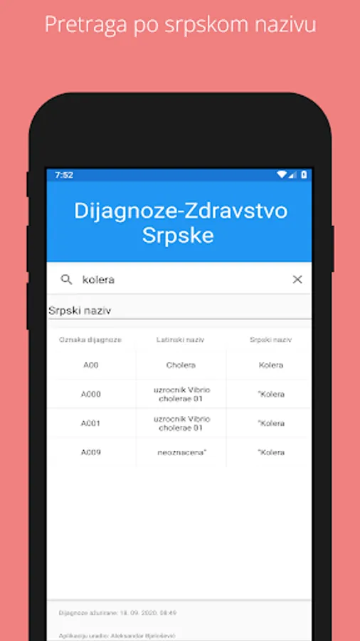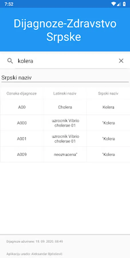 List of diagnoses from the website of the RS Health Insurance Fund, with all codes, Latin and Serbian name.