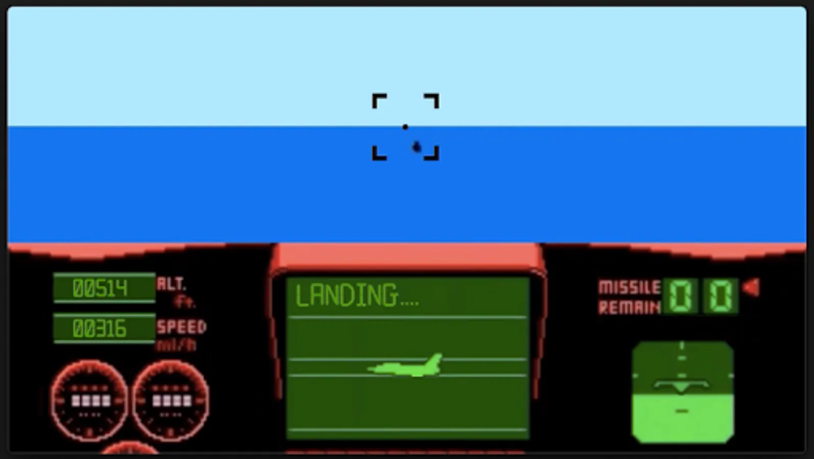 The landing part is infamous for being frustratingly difficult (AVGN managed to land the plane with the Power Glove, however). The instructions on the landing part are also confusing. Example : It says to “speed up”, then the message changes to “up, up!” Does it mean go up, or keep speeding up?
