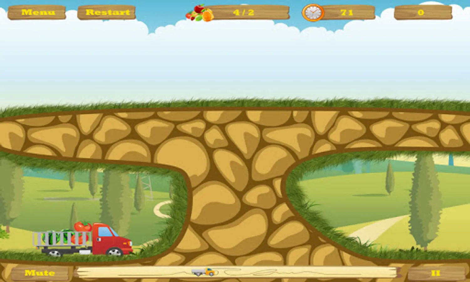 This is a puzzle and fun deliver goods game that follows the physical movement of objects,The road is blocked and try your best to use the board, wood and stone to cross it. Of course, you still need to deliver fruits to the marketplace with your truck in limited time.