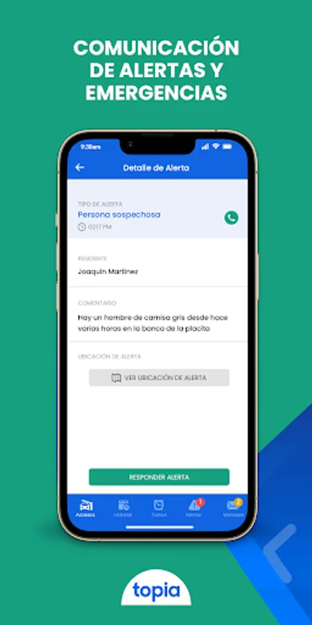 Through Topia Security, security personnel can receive notifications of alerts or emergencies by residents and establish direct communication to provide timely assistance.