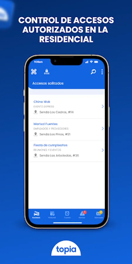 Topia Security performs the validation of the access permits to the residences through the reading of dynamic QR codes that must be shown by residents and visitors.