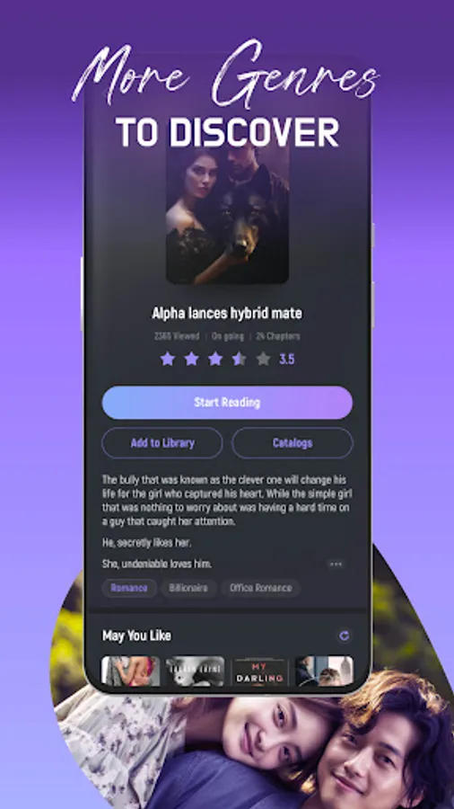 There are all kinds of books, whether you are a man or woman, young or old, you can find the right book for you. We have amazing love stories: Romance, Adult, Steamy Stories, YA&Teen, LGBT+... Wonderful supernatural world: Paranormal, Werewolf, Vampire, Drogon... I bet you can't wait to join us!