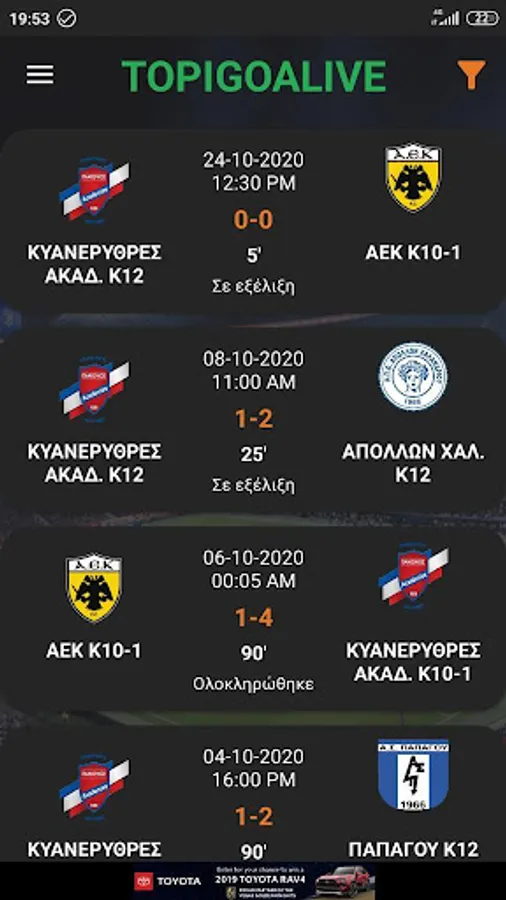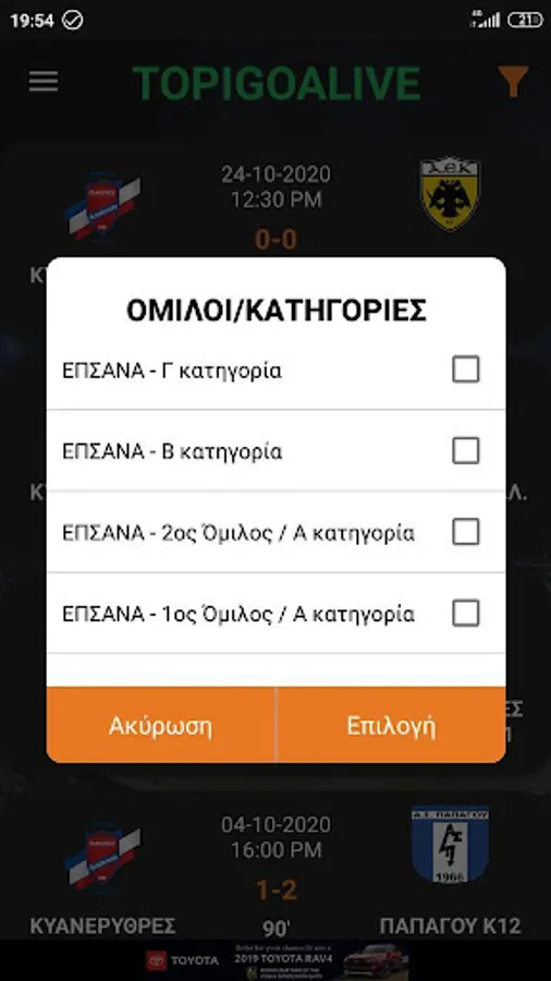 Users can select soccer groups and filtering matches that are showing in the main page.