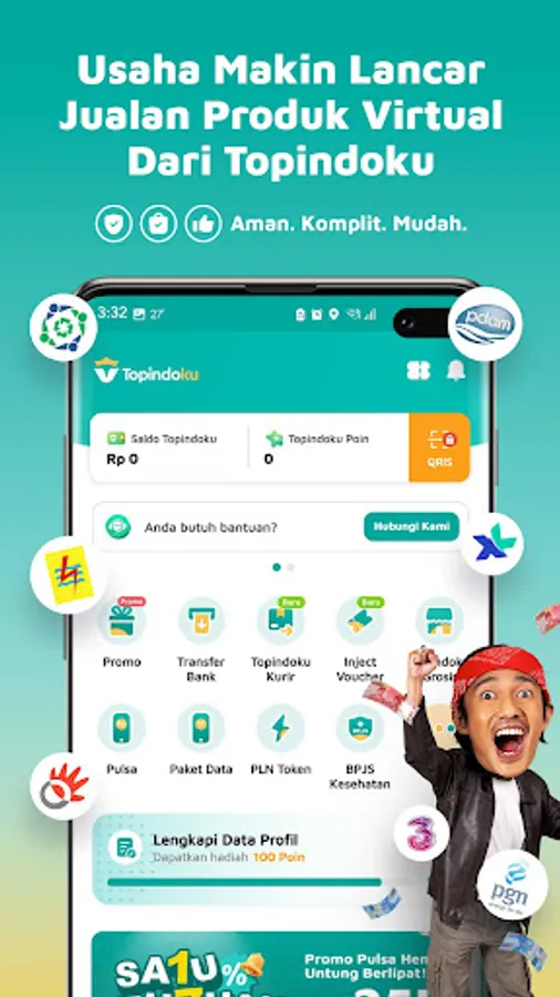 1. Refill Data Packages / Credit / Top Up E-money / PLN Tokens & Pay PLN / BPJS / PDAM / Postpaid / TELKOM / TV / Multifinance at guaranteed low prices with various attractive promos specifically for Topindoku agents.