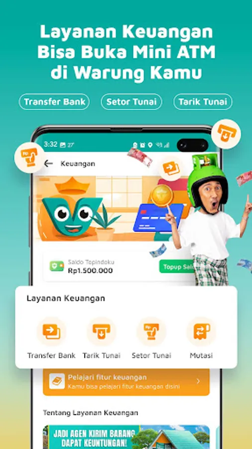 The Topindoku application provides a top up deposit method through the 4 largest National Banks in Indonesia (BCA/MANDIRI/BNI/BRI) to provide convenience and comfort for Topindoku Agents. In the future, Topindoku will also facilitate Top Up deposits via Virtual Accounts, to Retail Outlets (Alfamart, Alfamidi, Lawson).