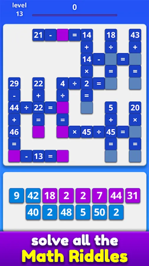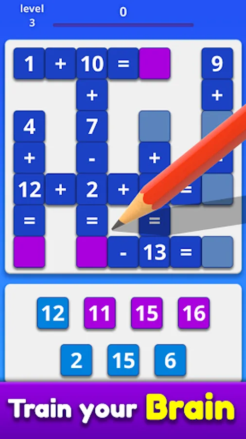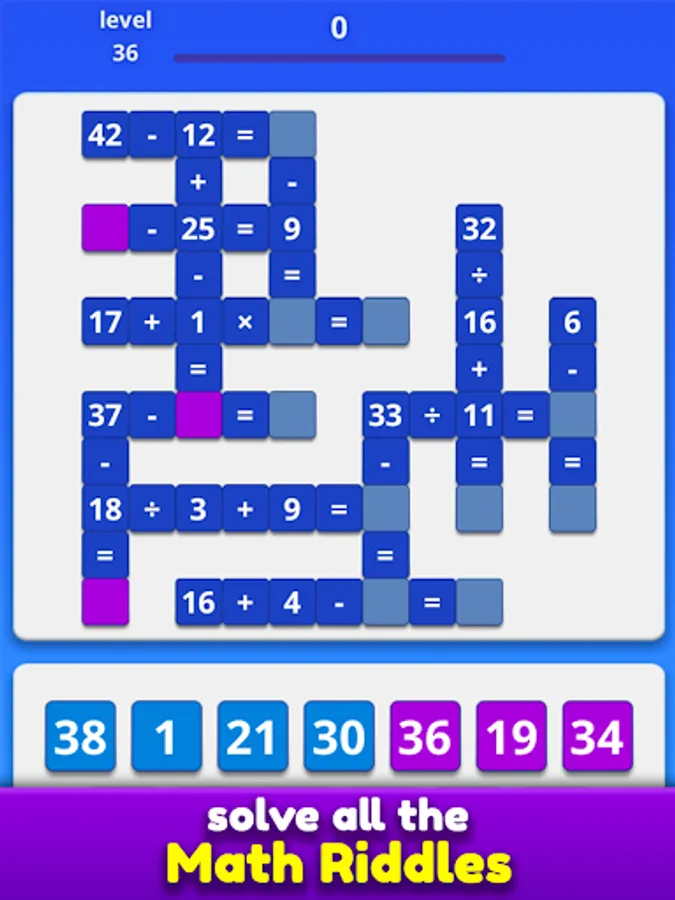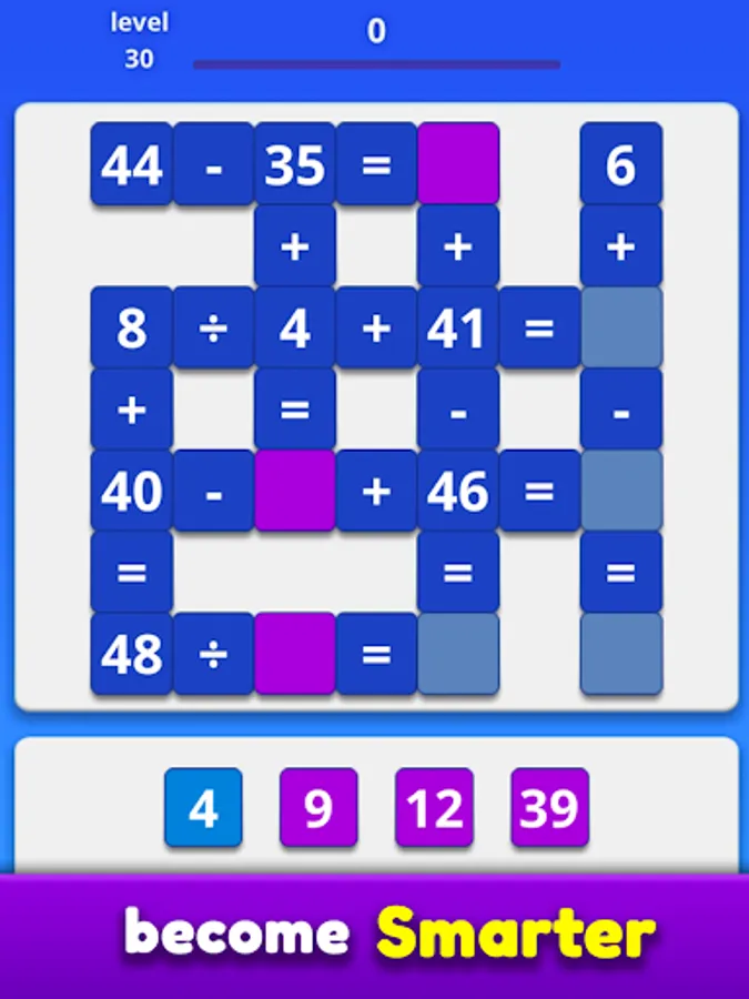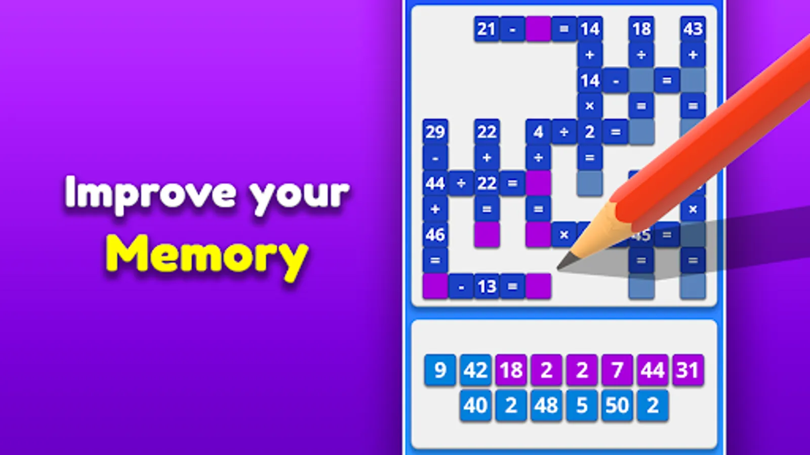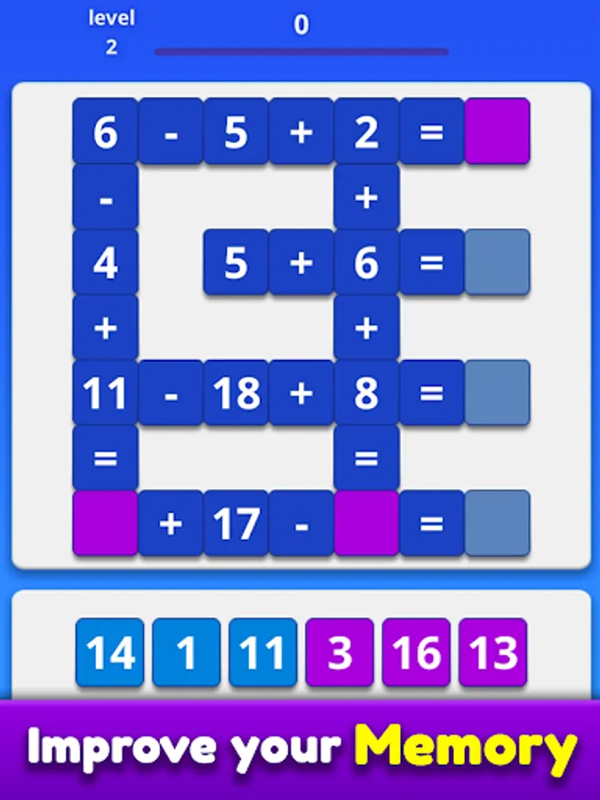 Math Match is a fun number matching game where you need to solve cross math puzzles and riddles to complete the level.
