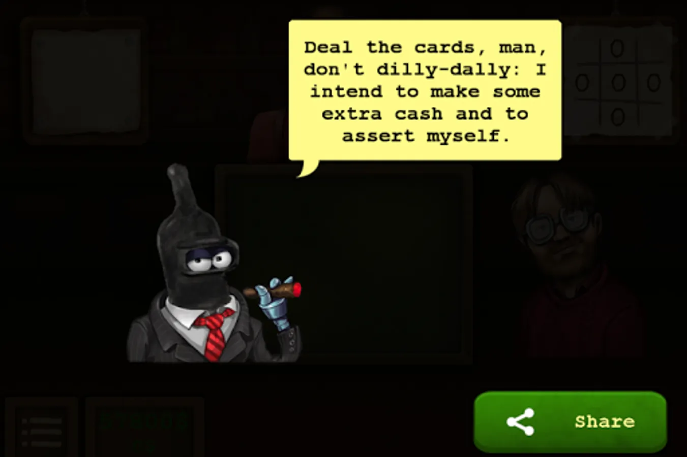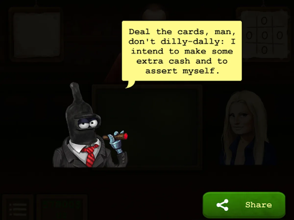 • 9 characters, each with its own temper and approach to the game (Bender, Tribbiani, Dr. Stroustrup and others)