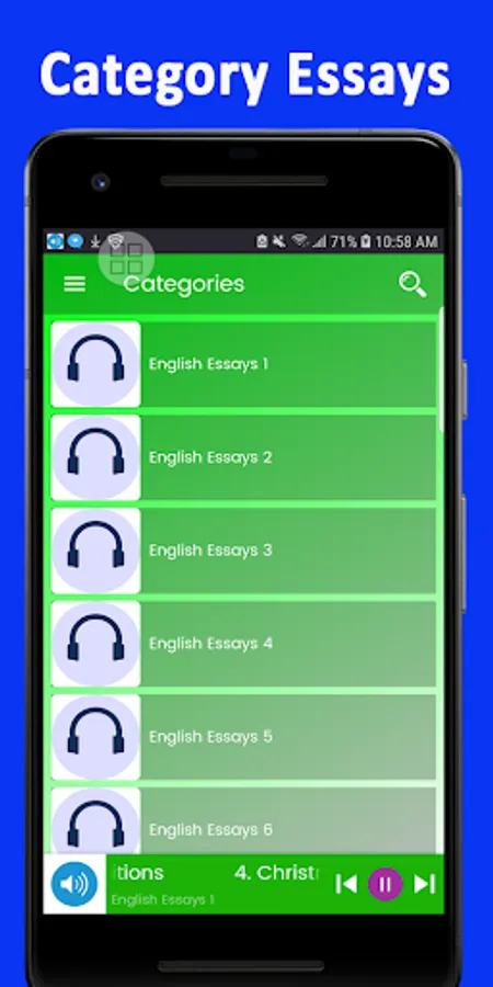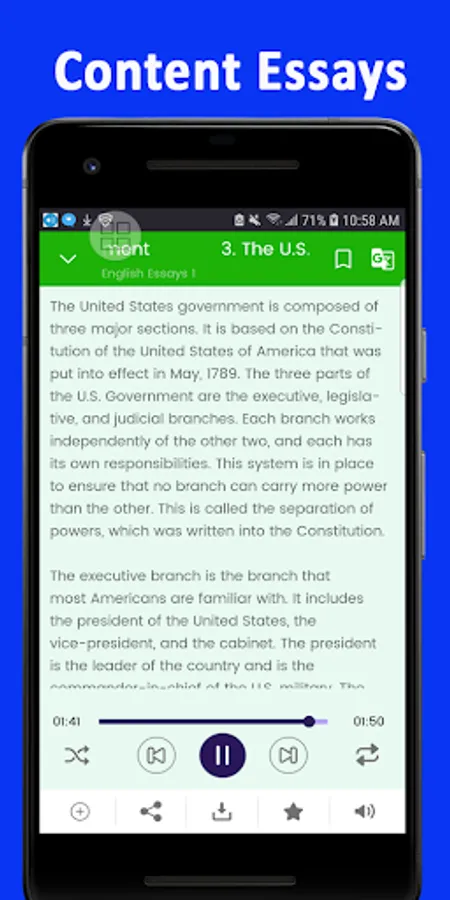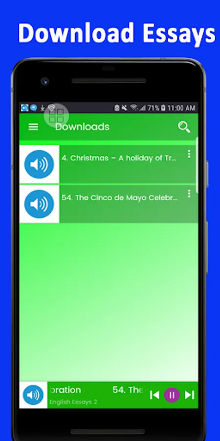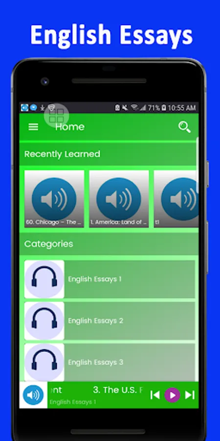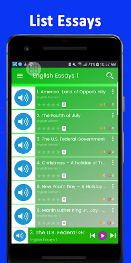365 Essays for English Learners: With audio and corresponding text the application will help you work english Essays , practice listening and reading skills.