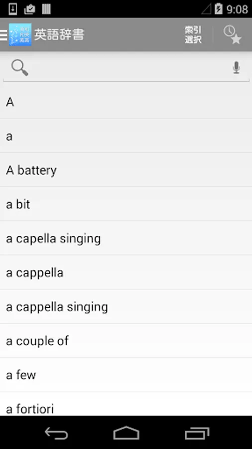 Both Japanese and English support high-speed incremental search (sequential search). Jump search is possible in both English and Japanese, and you can look up English-Japanese and Japanese-English dictionaries one after another. Voice search is also supported in both English and Japanese.