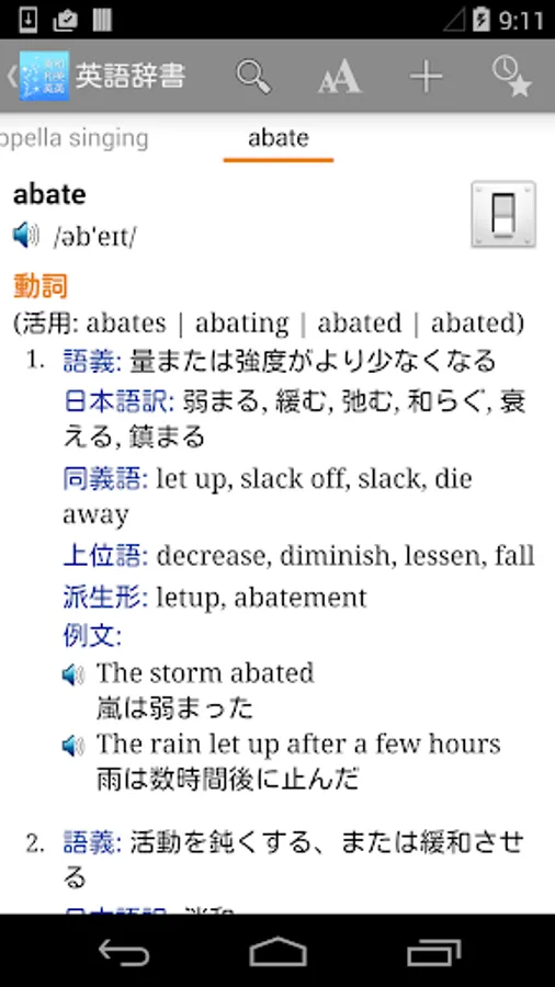 English headwords and example sentences are equipped with voice functions.