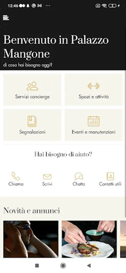 App to view services, activities and spaces at Palazzo Mangone, make reservations, reports and contact the Concierge.